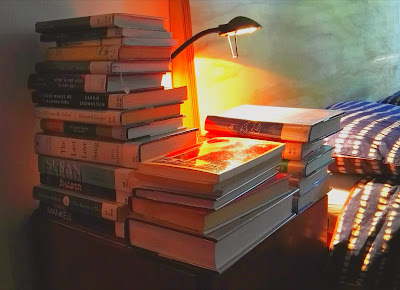 As you can see, I am a librocubicularist, someone who reads in bed, from the Latin libro, book, and cubiculum, bedchamber. A term invented by Christopher Morley, author of a book I'm going to be reading for the Great Summer Read, or more precisely rereading-- my choice for completing Challenge #4: "Reread a childhood favourite".
